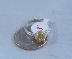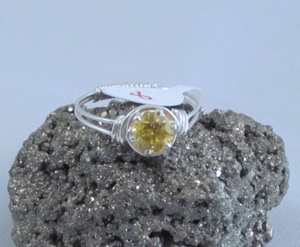 This ring is made with sterling silver wire and a wrapped yellow cubic zirconium stone. The shank is partially wrapped for added comfort and stability.