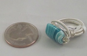 It is embellished with variegated aqua colored bead. This makes an incredibly comfortable ring.