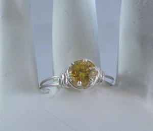 This ring is made with sterling silver wire and a wrapped yellow cubic zirconium stone. The shank is partially wrapped for added comfort and stability.