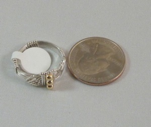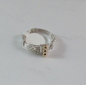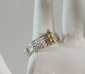 This crystal wave ring is made with sterling silver square wire and embellished with 3 gold plated round beads. The shank is partially wrapped for added comfort and stability.