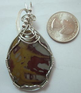This noreena jasper cabochon is wrapped in sterling silver wire. The bail will accommodate a size 5.5mm width chain. (not included)